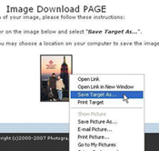 1.Right-click on your image and select "Save Target As or Save link As..." DO NOT SELECT "Save Picture As...", choosing this option will not allow you to save the high resolution version or your image.