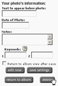 To delete a photo from your album, go “Home”, select the album to open and once you have located your photo, click on the black arrow above your photo. Immediately after, select “Delete or Edit photo info” from the menue that appears.